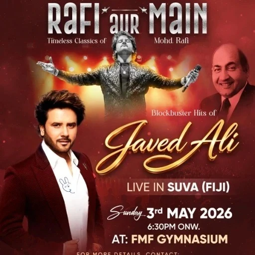 Experience a magical night of timeless melodies as acclaimed singer Javed Ali brings the golden classics of Mohammed Rafi to life in “Rafi Aur Main” — live in Suva. Join music lovers for an unforgettable evening of nostalgia, soulful performances, and blockbuster hits at FMF Gymnasium on Sunday, 3rd May 2026, from 6:30 PM onwards. Secure your tickets now and be part of a spectacular live concert experience.